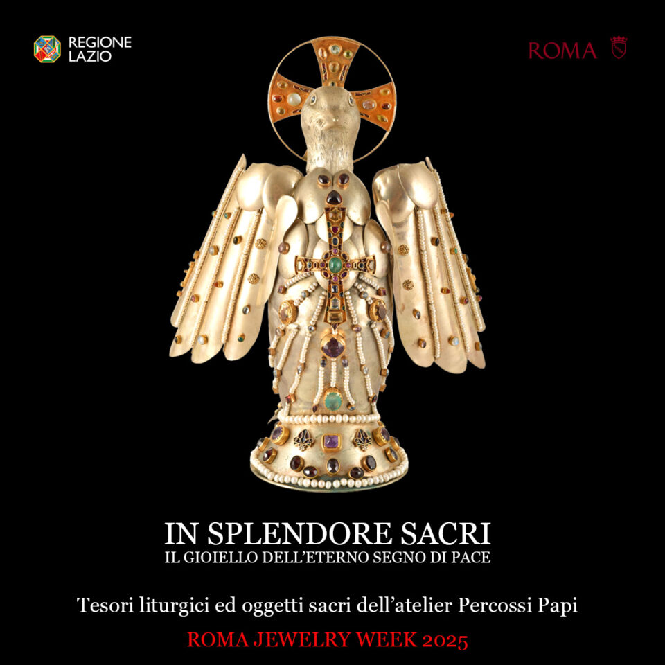 IN SPLENDORE SACRI IL GIOIELLO DELL’ETERNO SEGNO DI PACE Tesori liturgici e oggetti sacri dell’atelier Percossi Papi ROMA Complesso Monumentale di Santo Spirito in Sassia. 24 ottobre 2025, ore 17:30 – 21:00 25 – 26 ottobre 2025, ore 10:00 – 21:00 Nella cornice della Roma Jewelry Week, l’atelier Percossi Papi quest’anno presenta la mostra “In […]