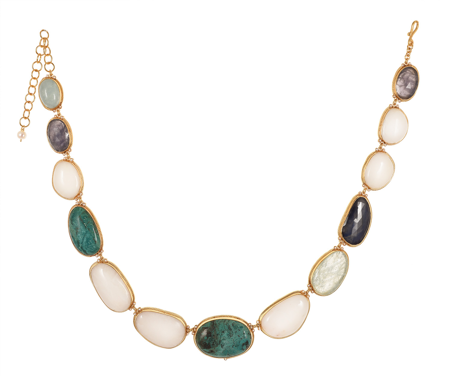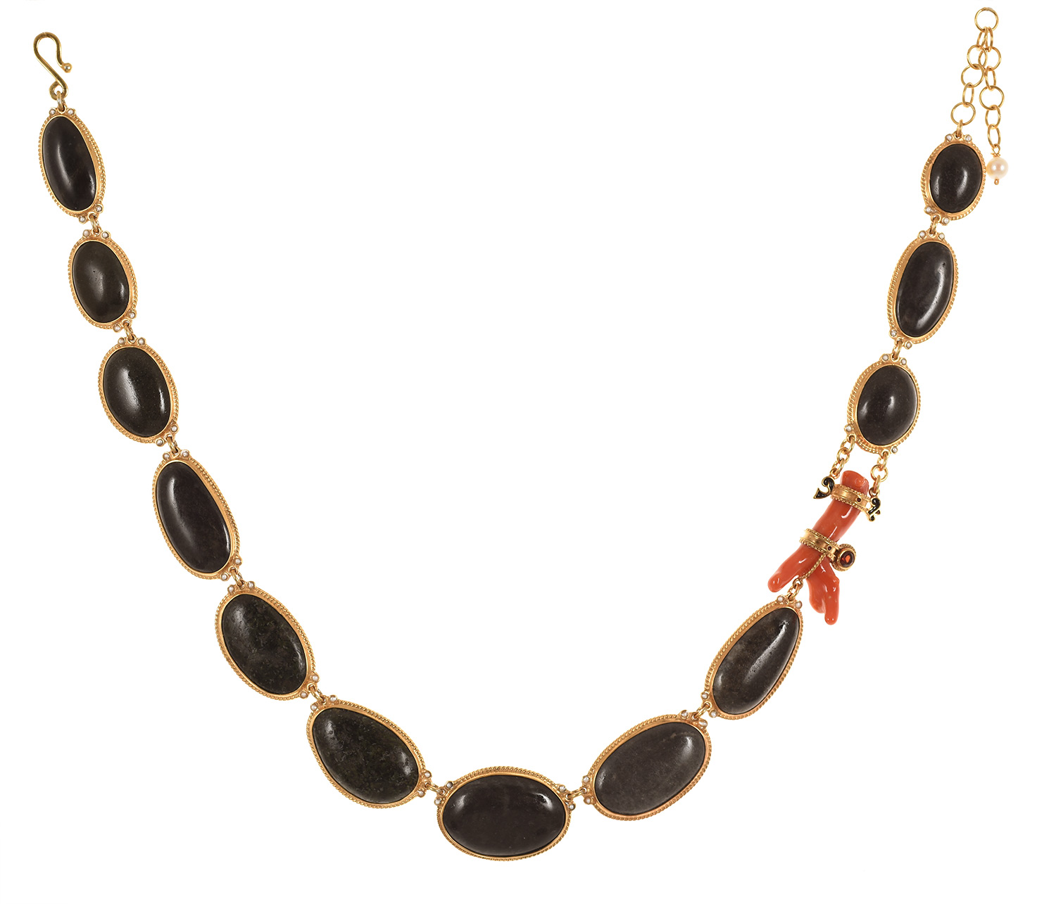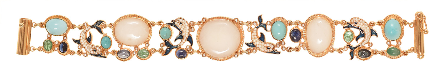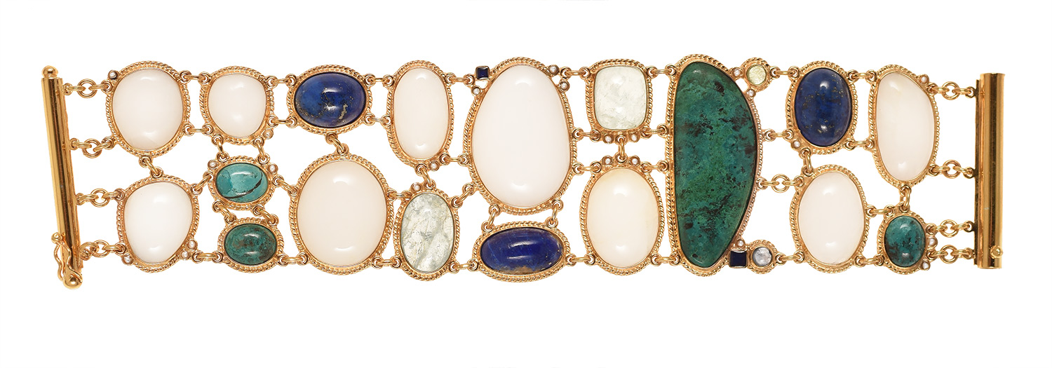 Bracelet with Aegean stone, emerald, sapphire, turquoise and micromosaic of seed pearls
