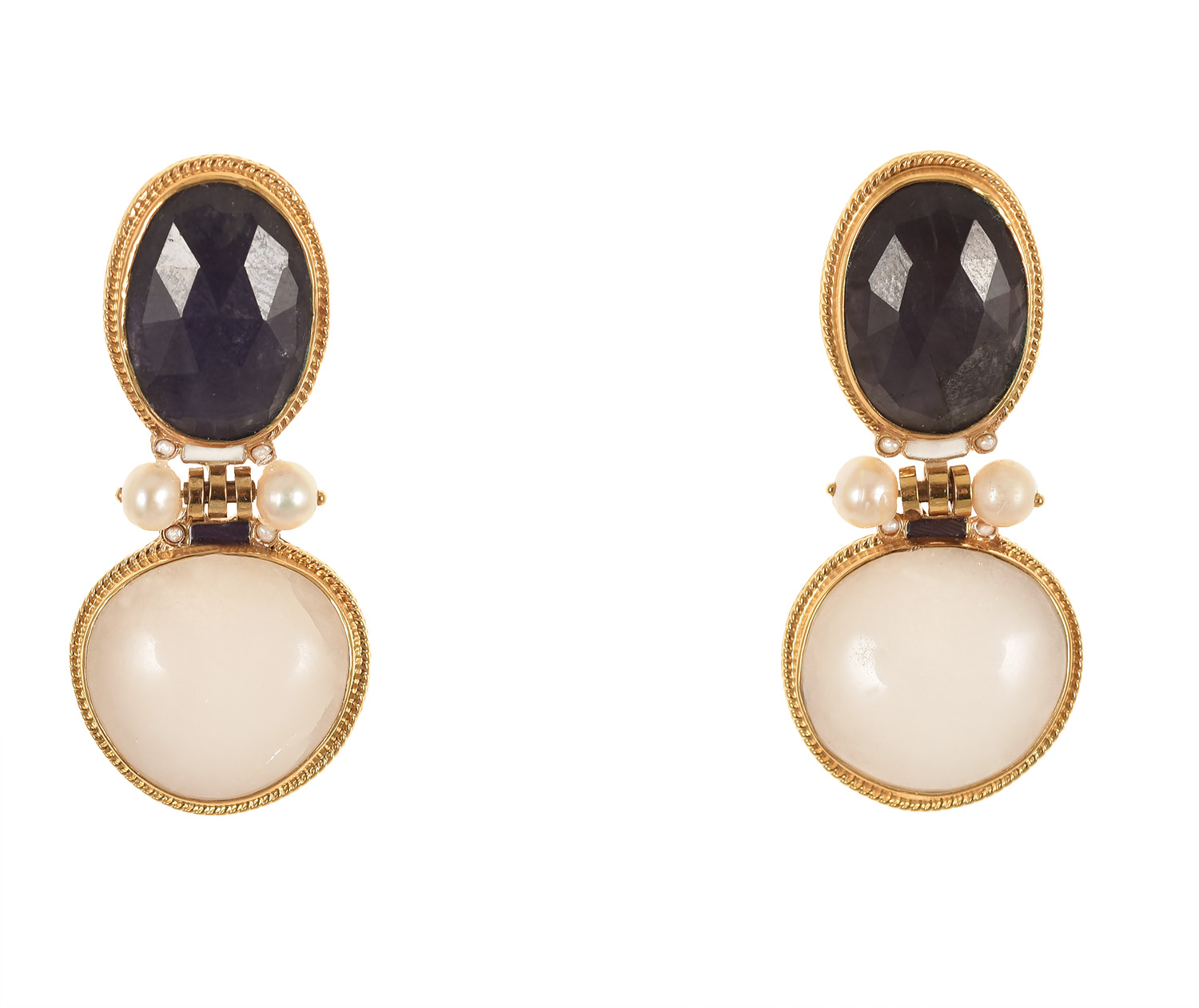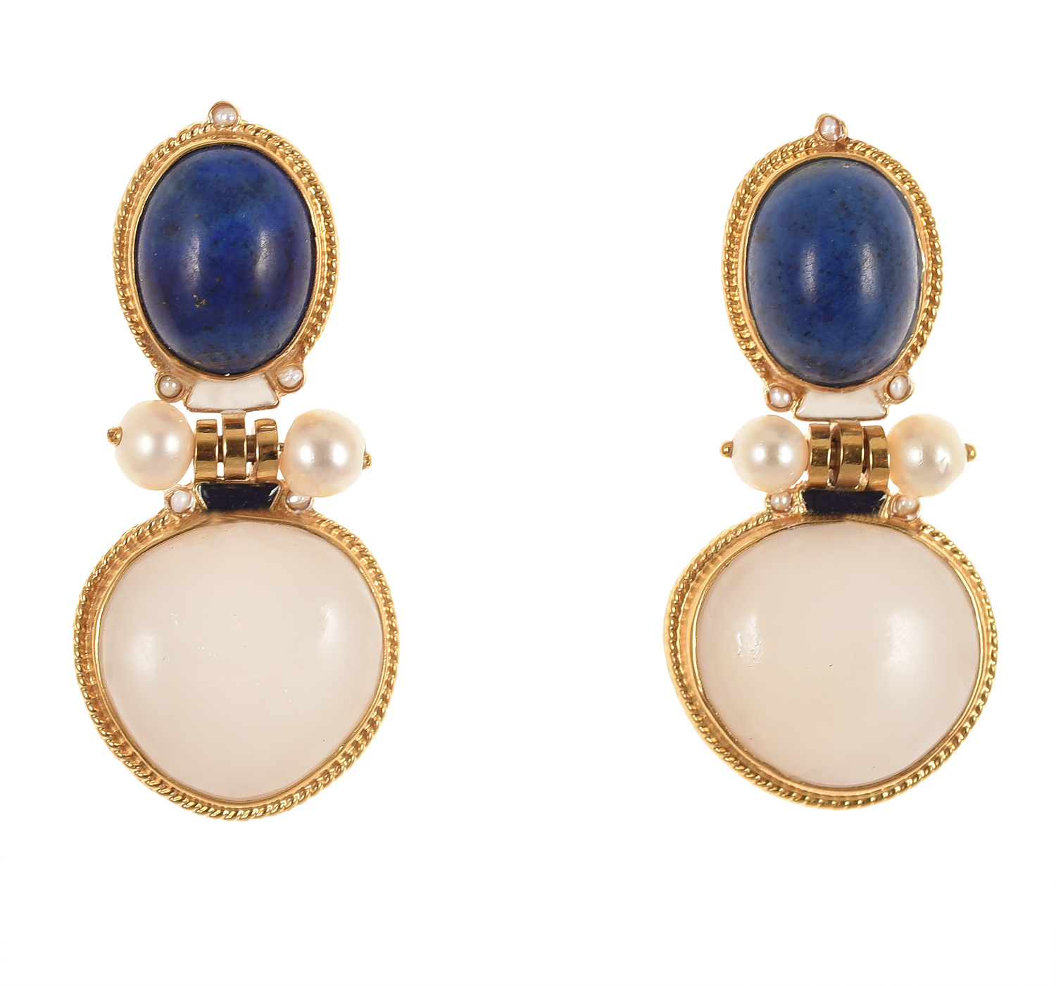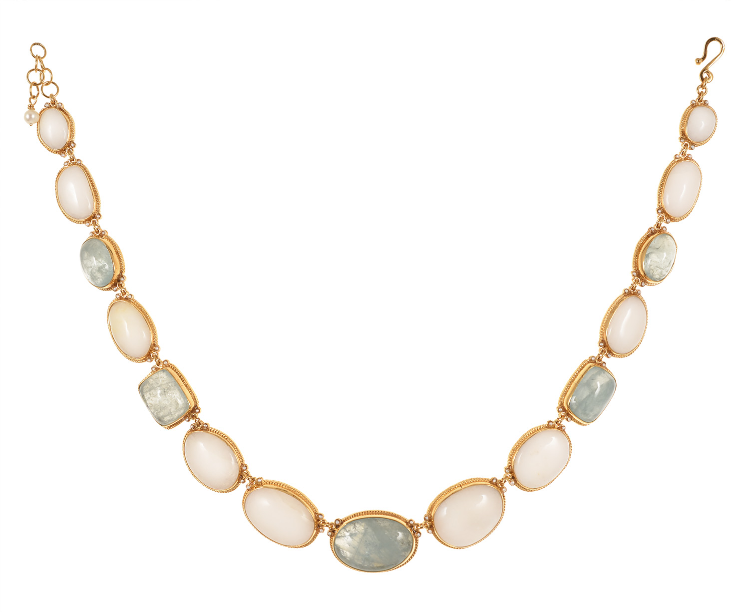 Bracelet with Aegean stone, emerald, sapphire, turquoise and micromosaic of seed pearls