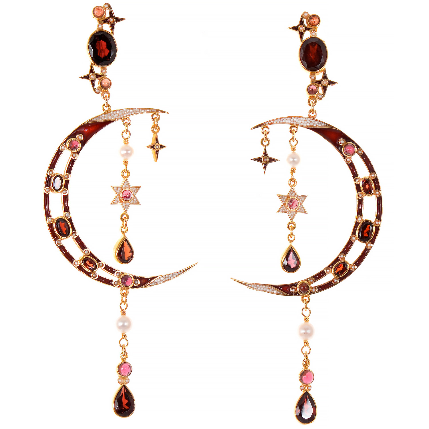 Garnet, pearl and micromosaic of seedpearls