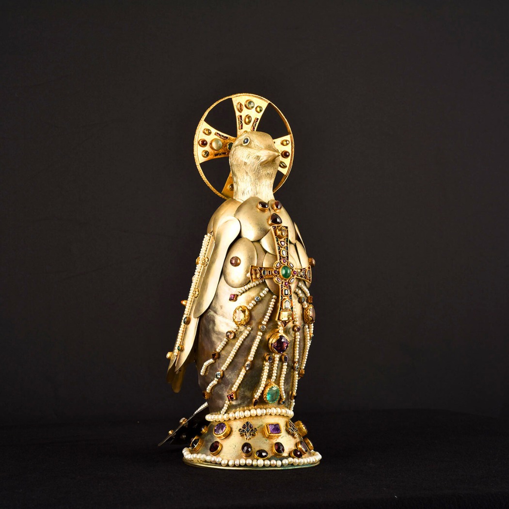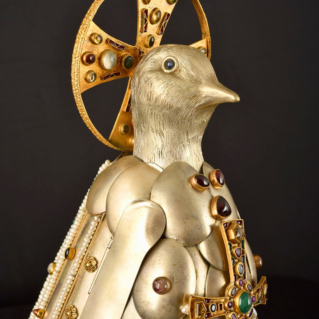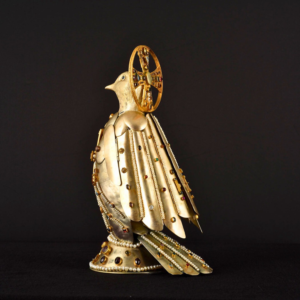 La colomba, emblema universale di pace e di Spirito Santo, custodisce al suo interno tre preziosi contenitori destinati agli oli santi.