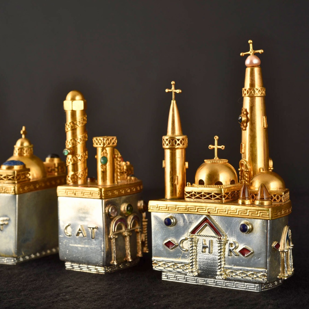 Custoditi al suo interno, i tre contenitori degli oli santi assumono la forma della Gerusalemme celeste,