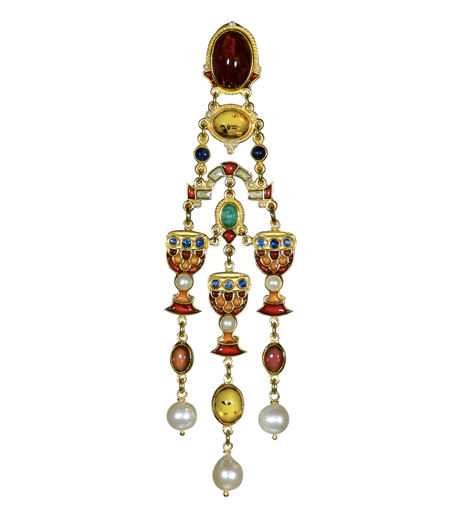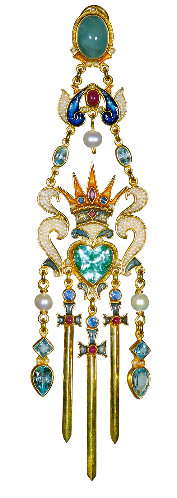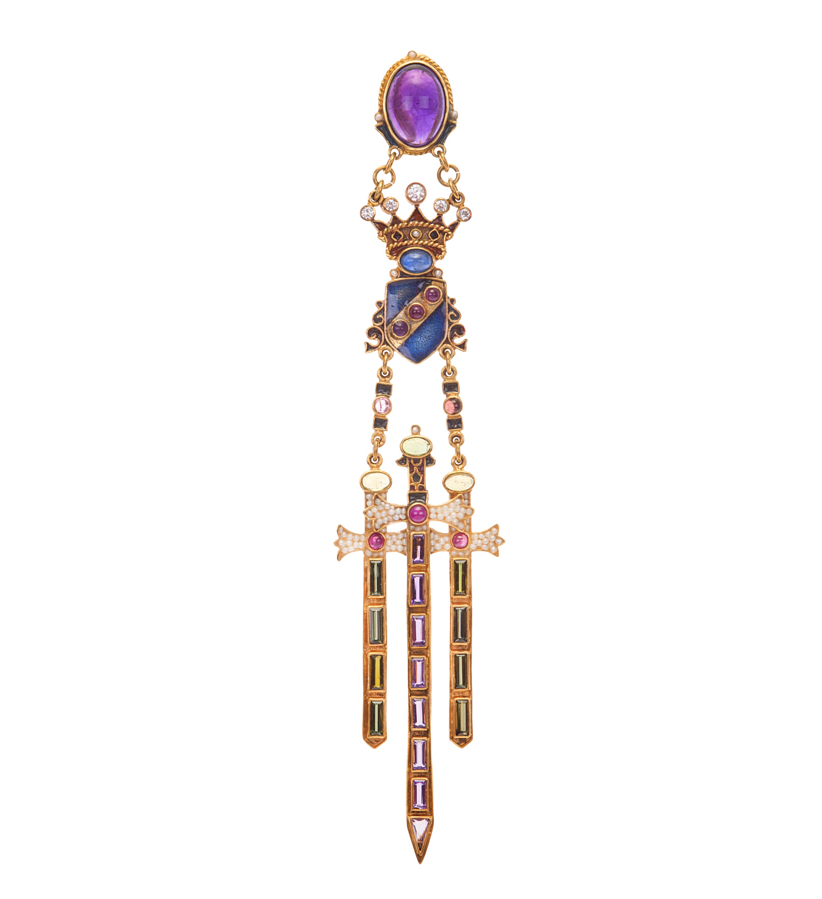 An extraordinary collection of single earrings, which can be combined or coupled. Inspired by the Neapolitan game cards, this collection is about aspects of our imagination and expressions of popular culture. Capri 2007
