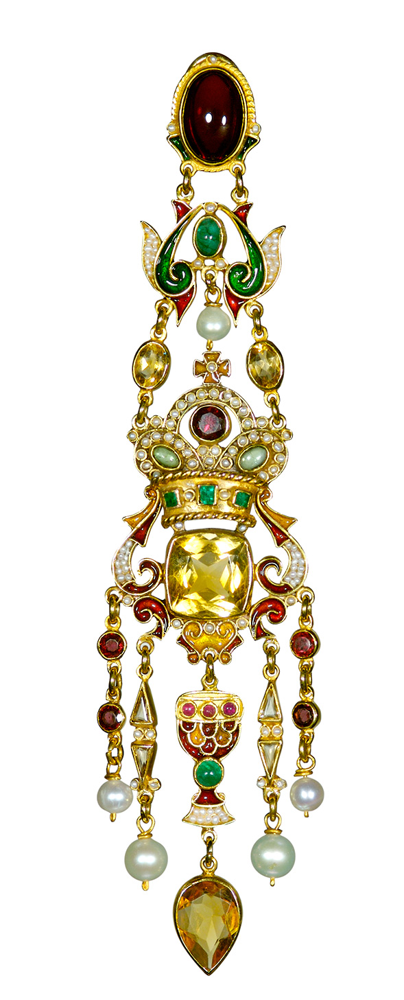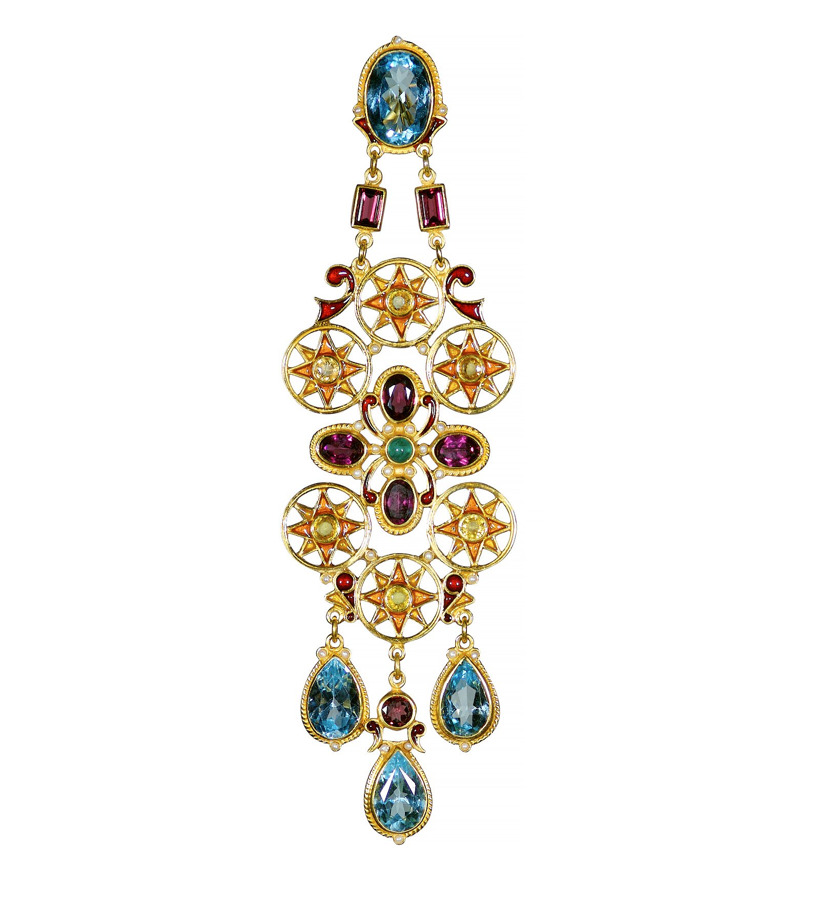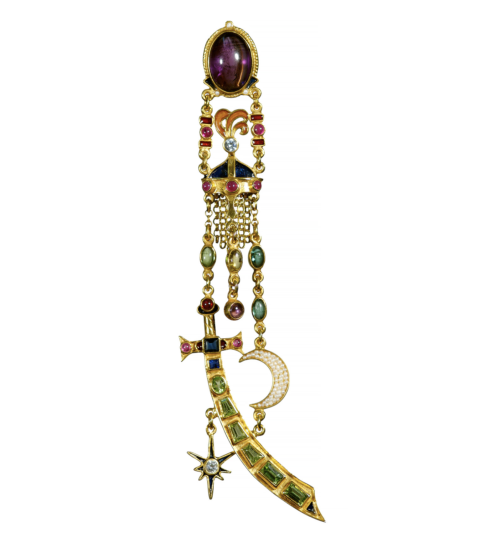 An extraordinary collection of single earrings, which can be combined or coupled. Inspired by the Neapolitan game cards, this collection is about aspects of our imagination and expressions of popular culture. Capri 2007