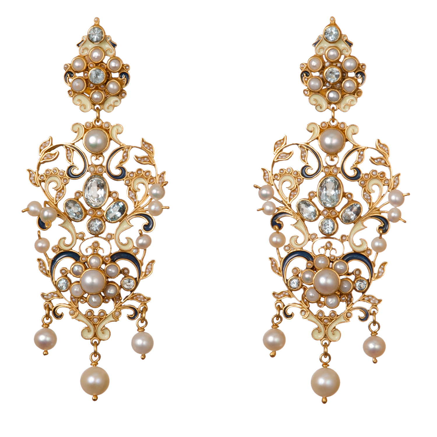 Blue topaz, pearl and micromosaic of seedpearls